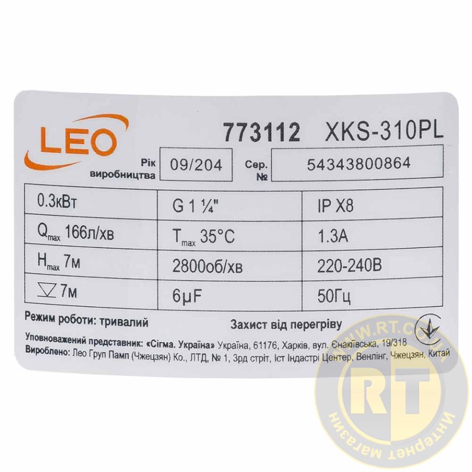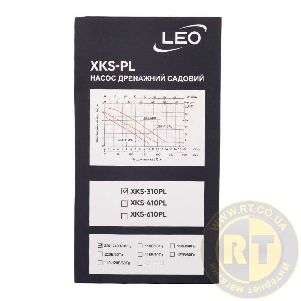 Насос дренажний садовий 0.3кВт Hmax 7м Qmax 166л/хв (част. до 5мм) LEO 773112