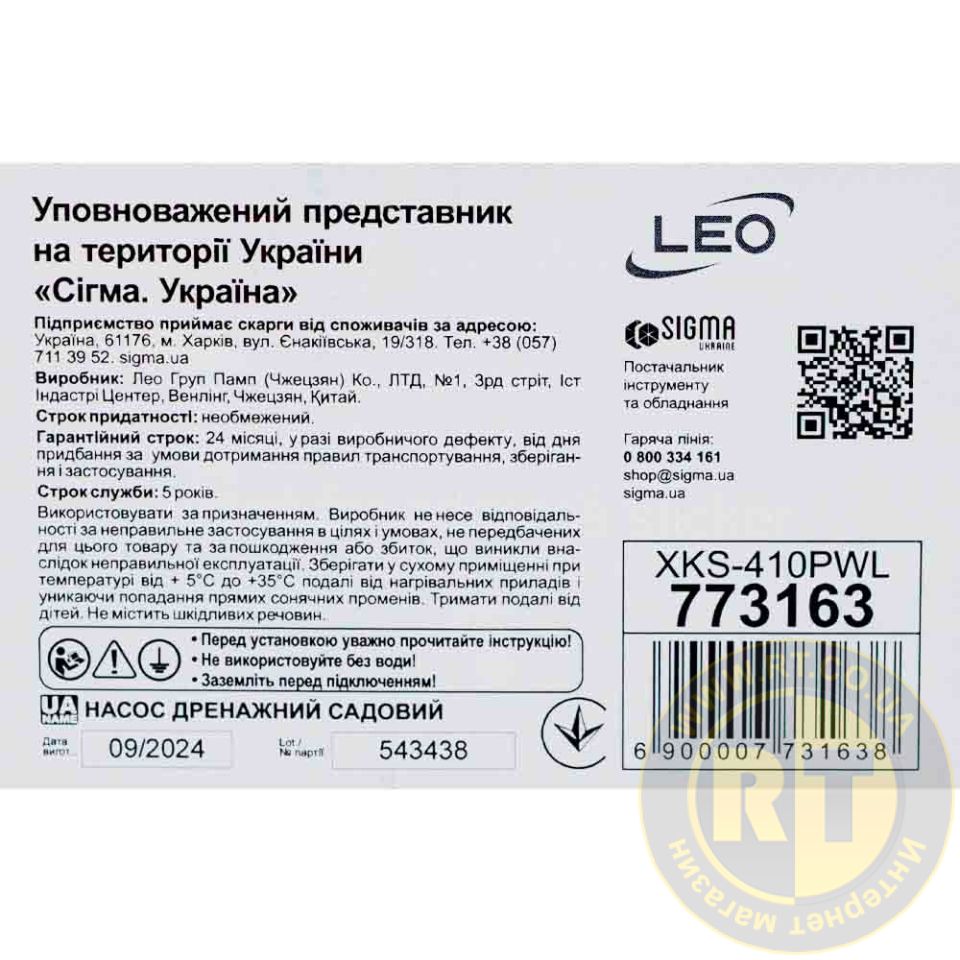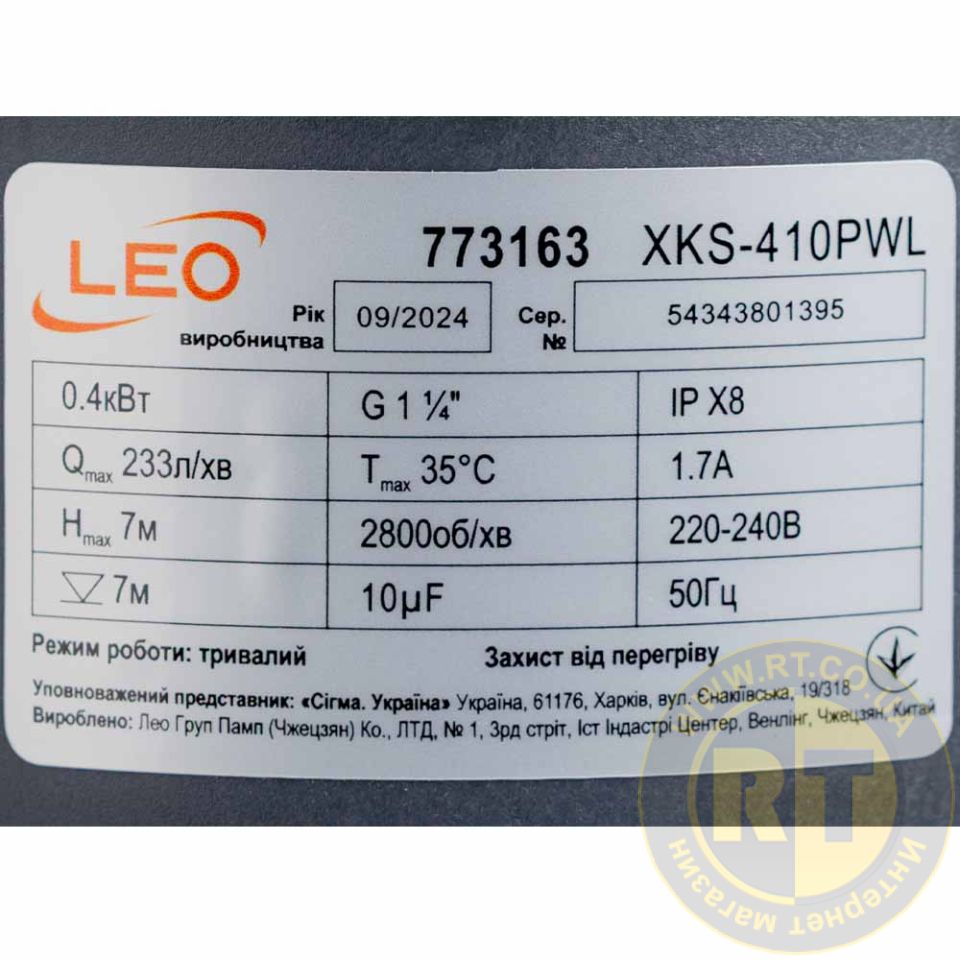 Насос дренажний садовий 0.4кВт Hmax 7м Qmax 233л/хв (част. до 25мм) LEO 773163
