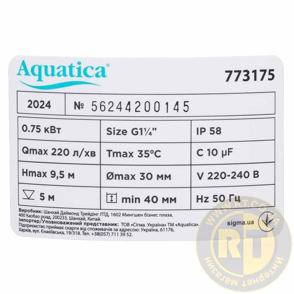 Насос дренажний садовий 0.75кВт Hmax 9.5м Qmax 220л/хв (част. до 30мм) AQUATICA 773175