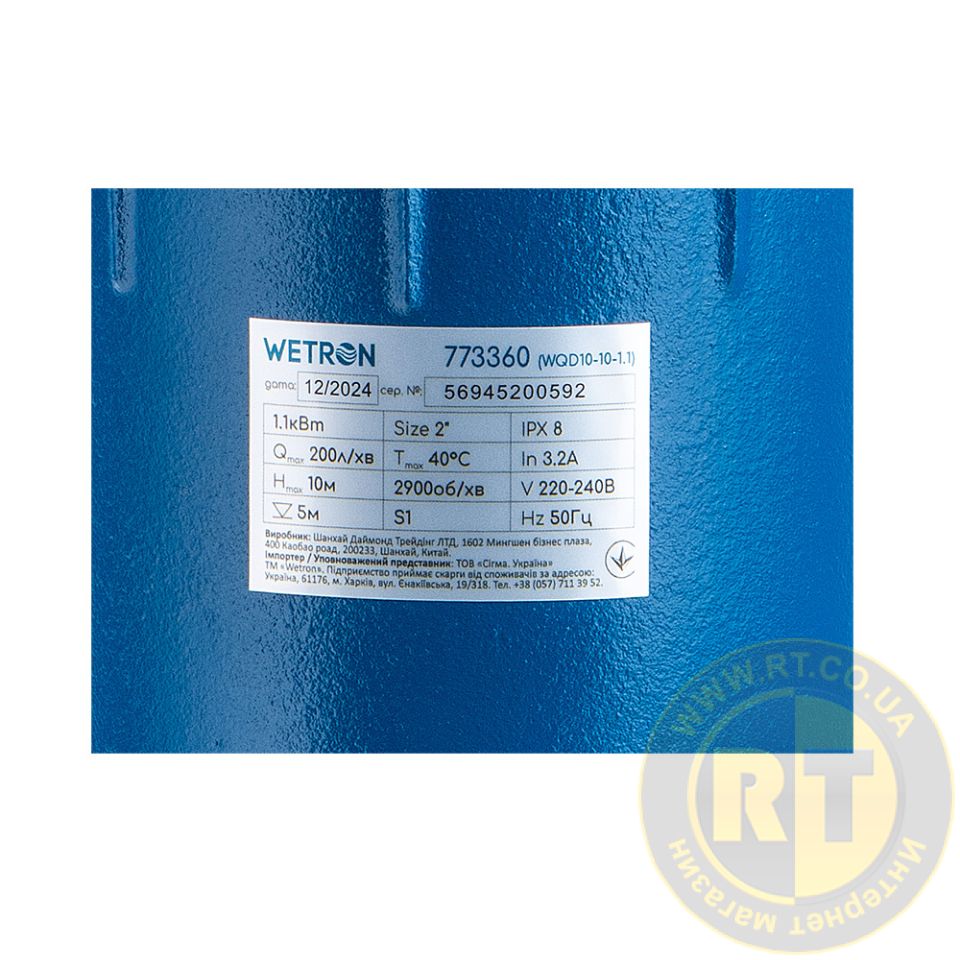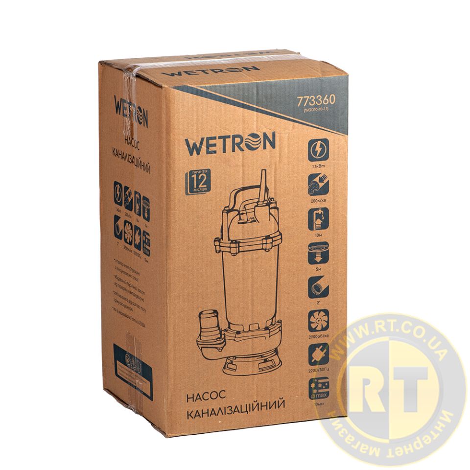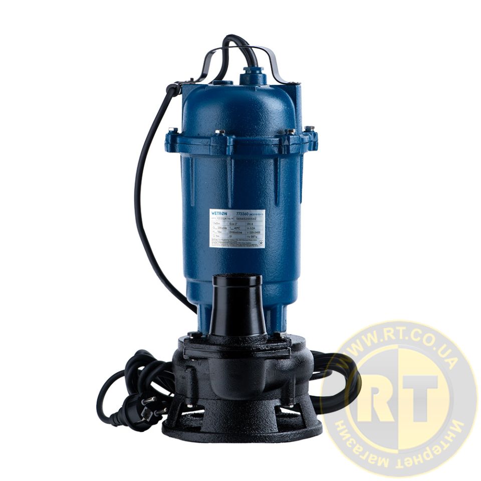 Насос каналізаційний 1.1кВт Hmax 10м Qmax 200л/хв без поплавця WQD10-8-0.55 WETRON 773360