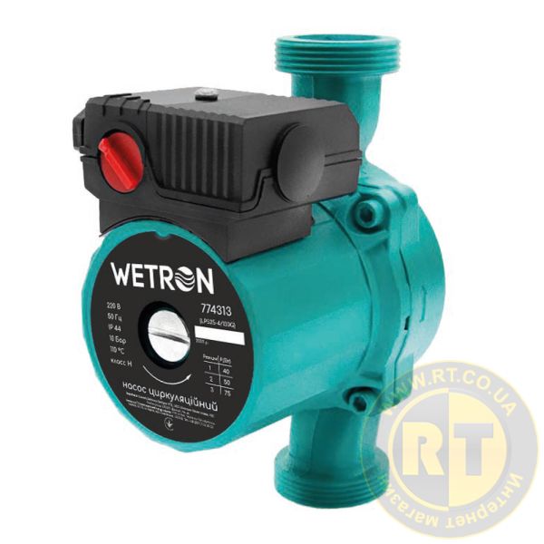 Насос циркуляційний 100Вт Hmax 6м Qmax 50л/хв Ø1½" 130мм зел + гайки Ø1" LPS25-6/130G WETRON (774333)