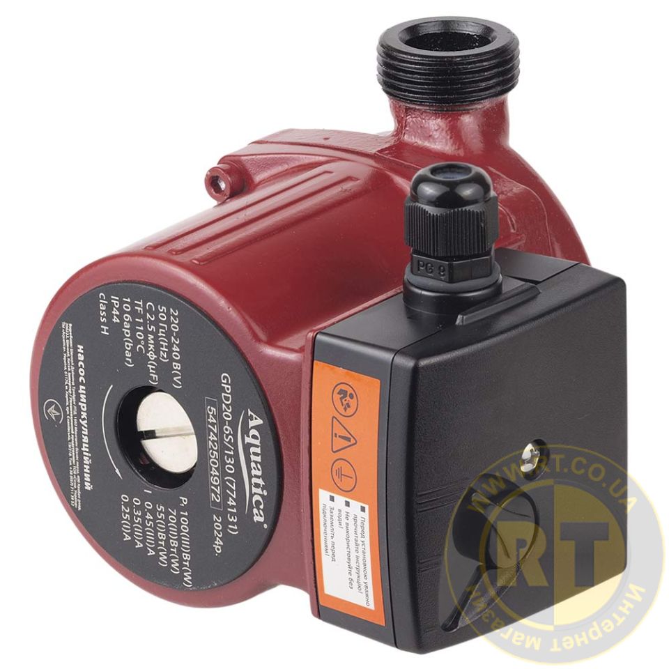 Насос циркуляційний 100Вт Hmax 6м Qmax 75л/хв Ø1" 130мм + гайки Ø¾" AQUATICA 774131