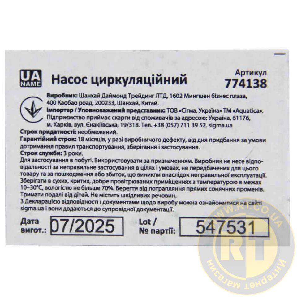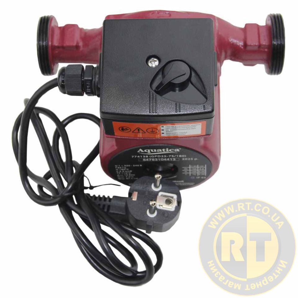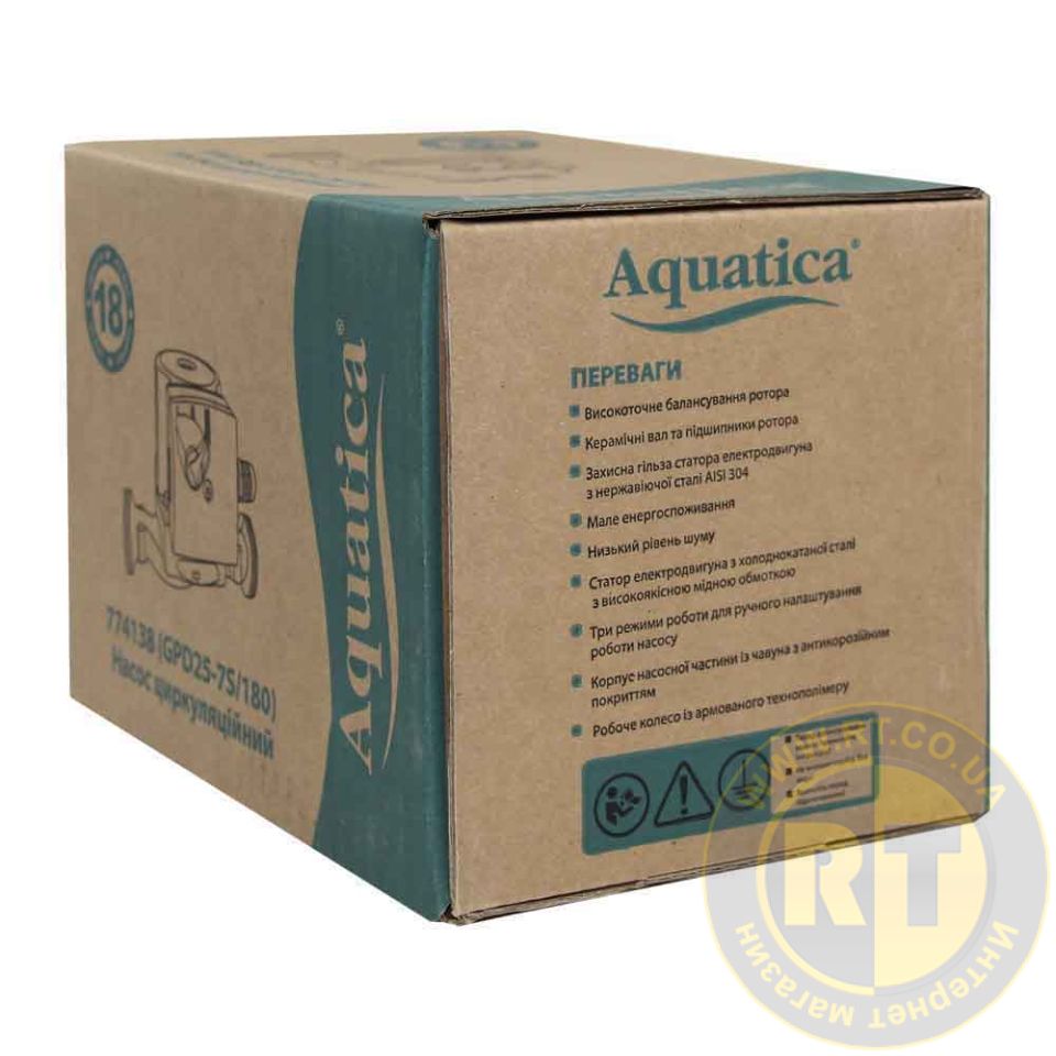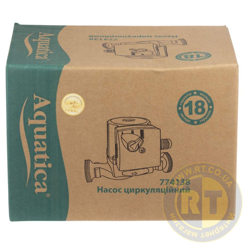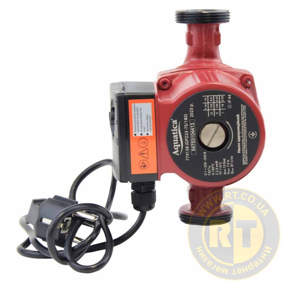 Насос циркуляційний 130Вт Hmax 7м Qmax 87л/хв Ø1½" 180мм + гайки Ø1" AQUATICA 774138