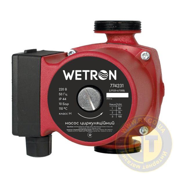 Насос циркуляційний 250Вт Hmax 8м Qmax 110л/хв Ø1½" 180мм бордо + гайки Ø1" LPS25-8/180B WETRON (774241)