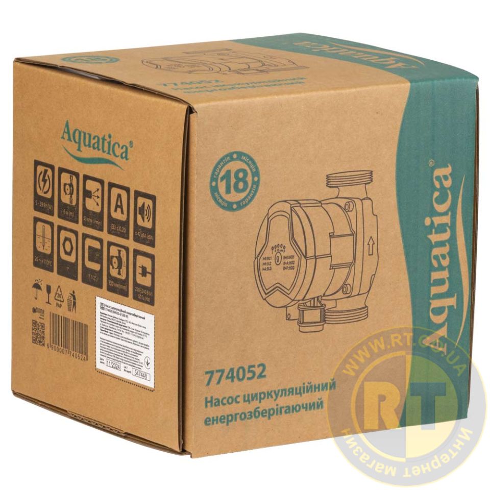 Насос циркуляційний енергозберігаючий 5-39Вт Hmax 6м Qmax 53л/хв Ø1½" 130мм + гайки Ø1" AQUATICA GPA25-6/130 III 774052