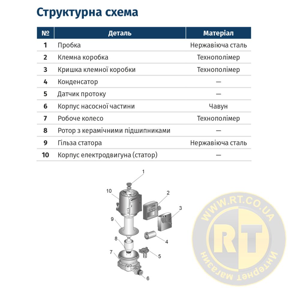 - Гільза статора електродвигуна: нержавіюча сталь AISI 304