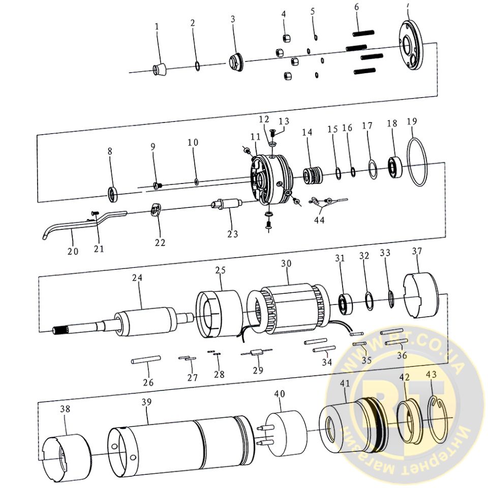 - Тип двигуна: асинхронний, маслонаповнений, з вбудованим в обмотку термозахистом