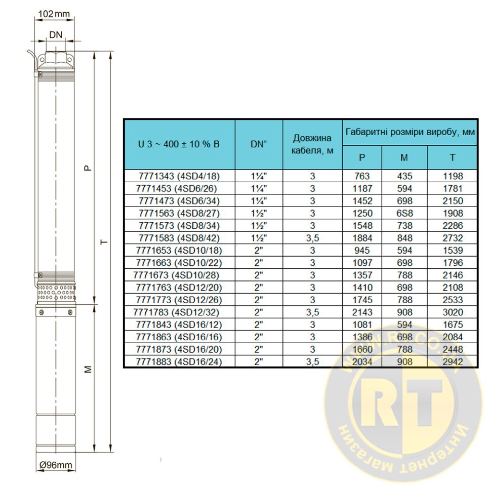 - Тип двигуна: асинхронний, маслонаповнений, з вбудованим в обмотку термозахистом