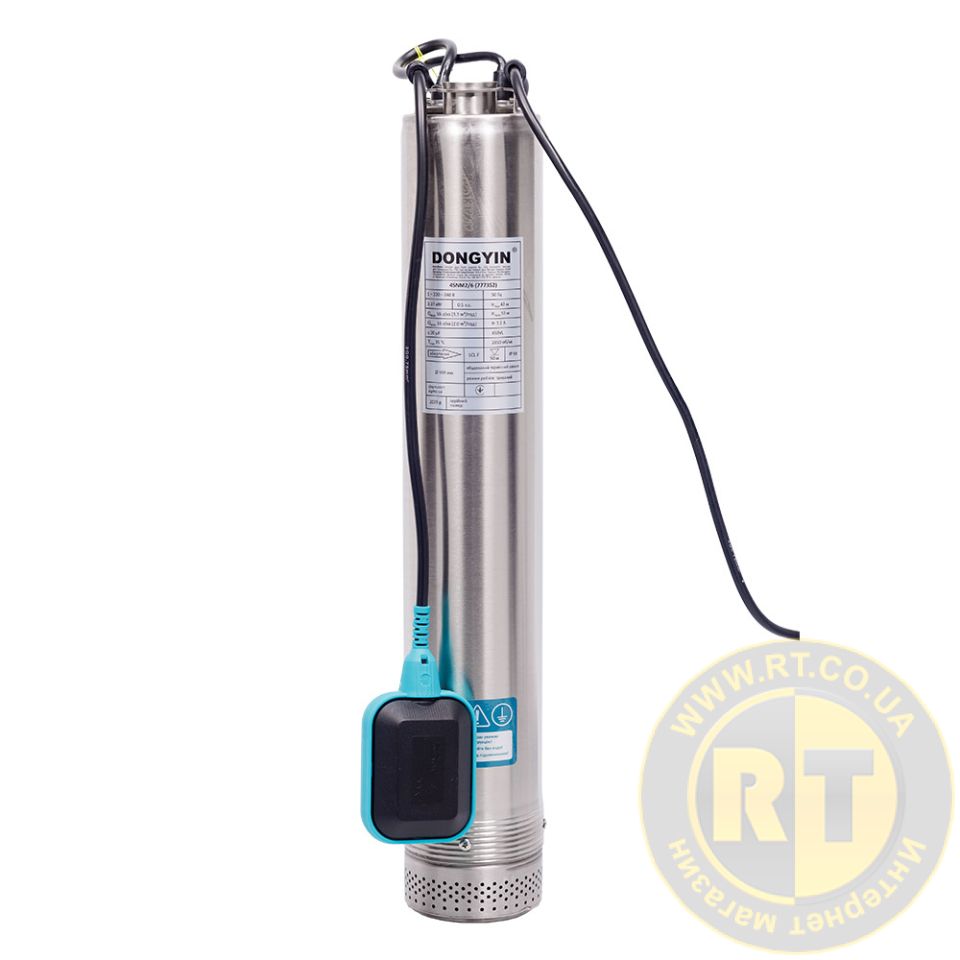 Насос з нижнім парканом води 0.37кВт H 42(30)м Q 55(33)л/хв Ø100мм+поплавок DONGYIN 4SNM2/6 (777352) призначений для перекачування чистої води і може застосовуватися: для побутового використання при водопостачанні зі свердловин та резерву автоматичної подачі води разом із невеликими резервуарами під час використання керуючої автоматики (керуючі реле, контролери тиску).