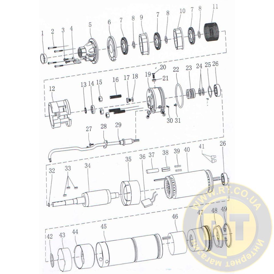 - Тип двигуна: асинхронний, маслонаповнений, з вбудованим в обмотку термозахистом