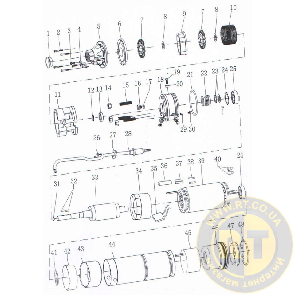 - Тип двигуна: асинхронний, маслонаповнений, з вбудованим в обмотку термозахистом