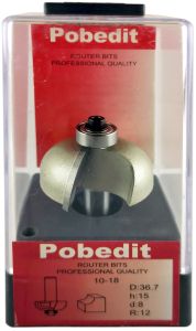Фреза кромкова радіусна зворотна з підшипником D-36.7 мм, R-12 мм, d-8 мм Pobedit P-1018-08-12