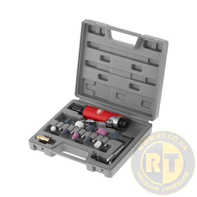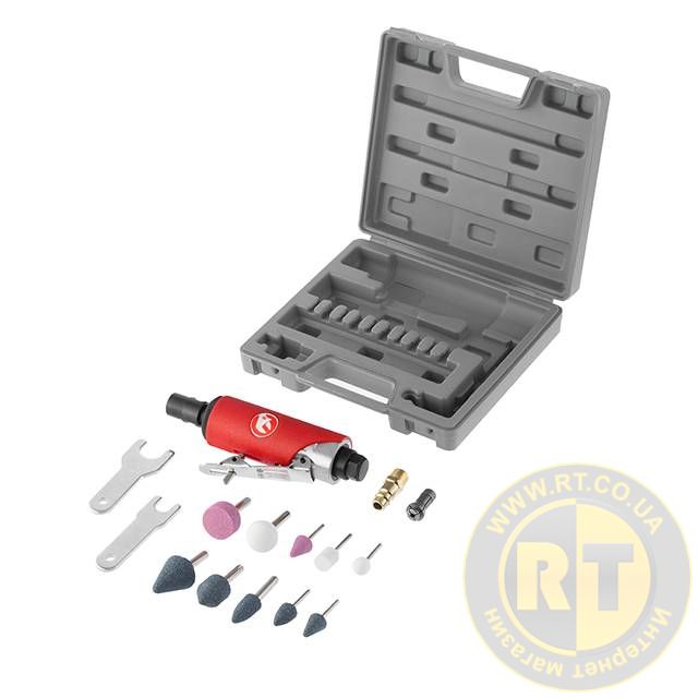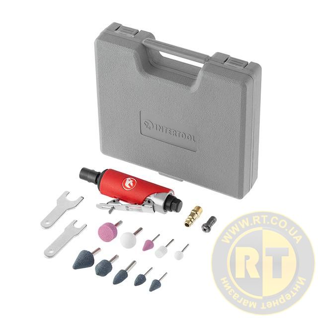 Шліфмашина пневматична міні, 1/4", до 6 атм, 25 000 об/хв, 115 л/хв, набір шліфувальних каменів 10 од., кейс INTERTOOL PT-1003