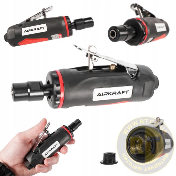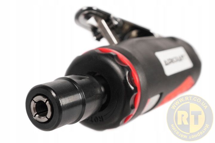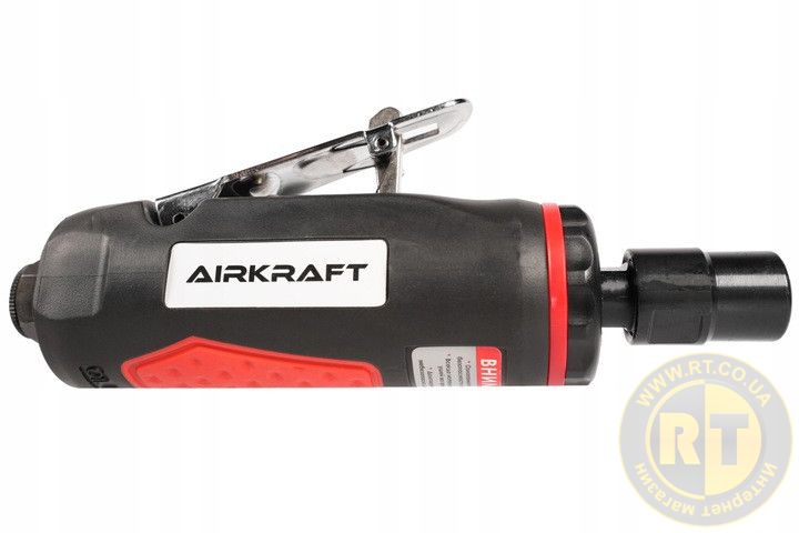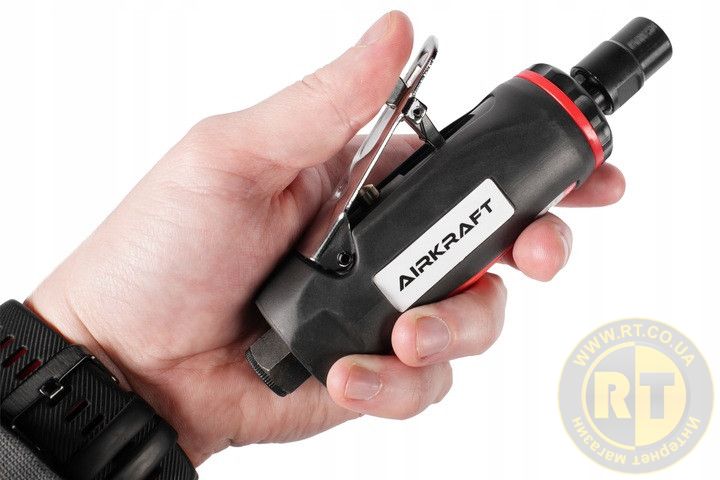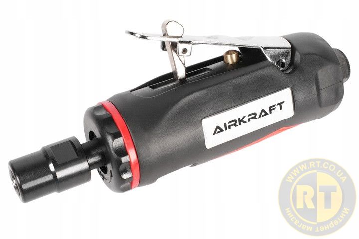 Зачистна пневматична машинка AIRKRAFT AT-7032B для важких робіт з регульованою потужністю. Важіль блокування для запобігання випадковому запуску. Задній вихлоп з глушником, який направляє повітря у бік від робочої області. Підходить для шліфування, полірування та видалення задирок із заготівлі.