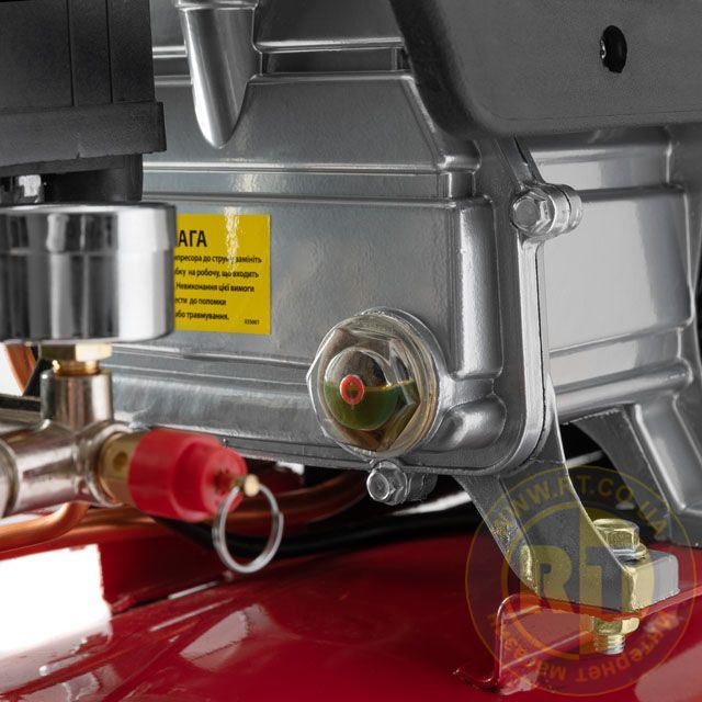 Для зливання вологи, що утворюється у процесі роботи, на дні ресивера розташований зливний клапан. Його потрібно періодично відкривати для зливання конденсату. Компресор PT-0021 має компактні габаритні та не займе багато місця на робочому майданчику.