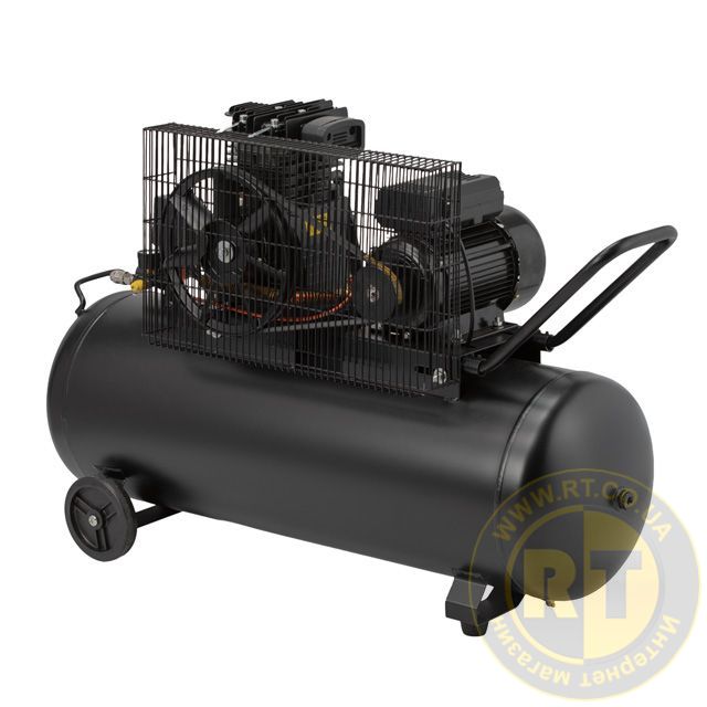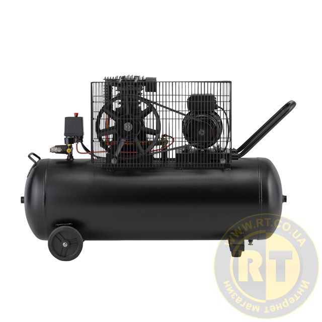 Компресор має ремінний привід від електродвигуна до головки з двома сталевими циліндрами. Це забезпечує ефективне охолодження і зменшує навантаження на двигун. Мідна обмотка двигуна збільшує ресурс служби, підвищує міцність та продуктивність компресора, що підтверджує 3 роки гарантії.