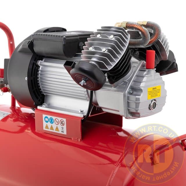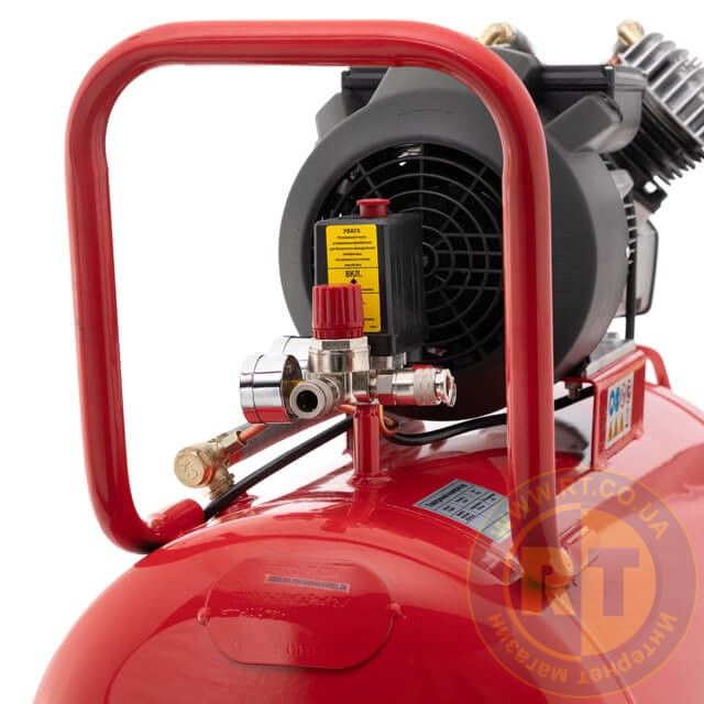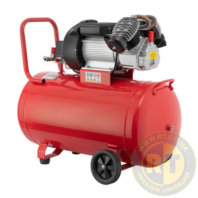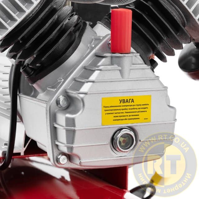 Компресор PT-0008 зі збільшеним об'ємом ресивера на 100 л надовго зберігає необхідний об'єм стисненого повітря. Компресор має прямий привід від електродвигуна до голови із двома чавунними циліндрами.