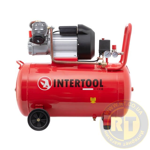 Компресор, 100 л, 3,0 кВт, 220 В, 10 атм, 420 л/хв, 2 циліндри INTERTOOL PT-0008