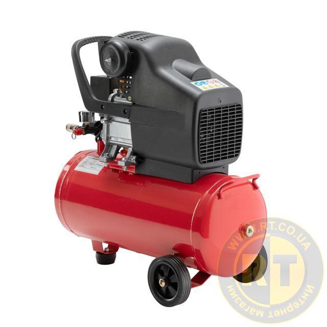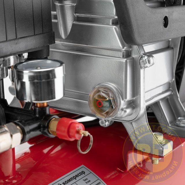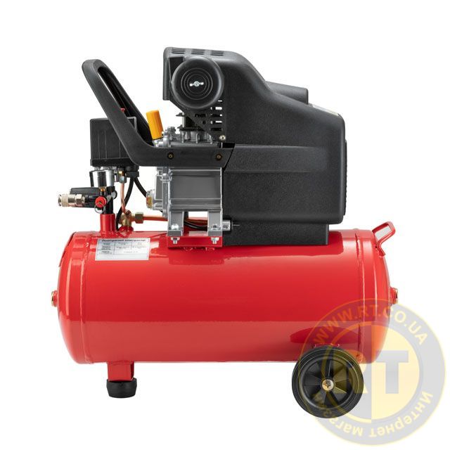 Зручне транспортування компресора по робочому майданчику здійснюється двома колесами та за допомогою ручки. Опорні ніжки компресора виготовлені з гуми, вона згладжує вібрацію та виступає в ролі амортизаційного елемента. Для того, щоб можна було контролювати тиск у ресивері й тиск на виході, компресор оснащений двома манометрами з регулятором вихідного тиску. Регулятор тиску з манометром дозволяє регулювати та постійно підтримувати вихідний тиск, необхідний вашому інструменту або обладнанню.