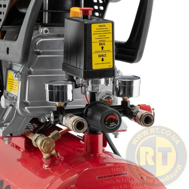 Компресор 24 л, 1.2 кВт, 220 В, 8 атм, 205 л/хв INTERTOOL PT-0020
