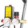 - Два манометри дозволяють контролювати тиск усередині ресивера та тиск на виході