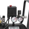 Для того, щоб можна було контролювати тиск у ресивері й тиск на виході, компресор оснащений двома манометрами з регулятором вихідного тиску.Регулятор тиску з манометром дозволяє регулювати та постійно підтримувати вихідний тиск, необхідний вашому інструменту або обладнанню.