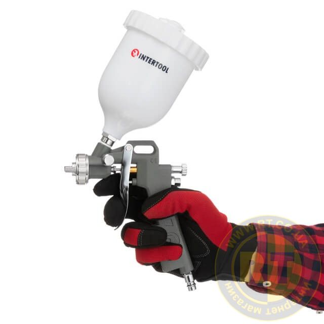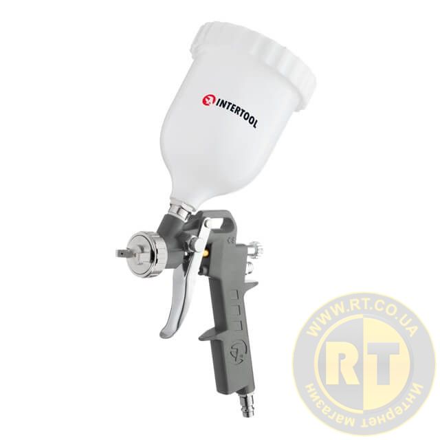 Фарбопульт пневматичний HP, форсунка: 1,5 мм, верхній пластиковий бачок: 600 мл, 5 бар INTERTOOL PT-0204