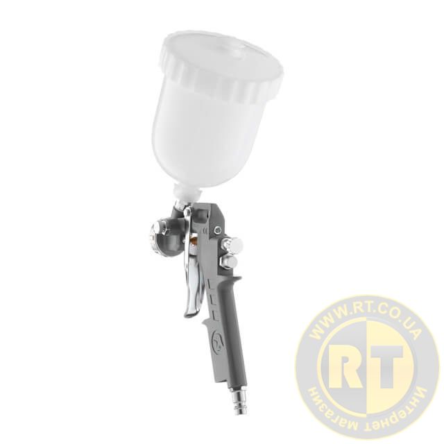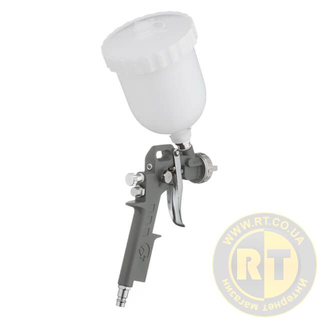 Пістолет для фарбування має налаштування, які дозволяють вам більш точно відрегулювати подачу повітря та форму факела. Оснащений пластиковим бачком, об'ємом 600 мл, завдяки чому можна візуально контролювати рівень фарби, що дуже зручно. За необхідності бачок можна замінити на аналогічний новий PT-1902 або металевий PT-1907.
