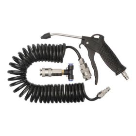 Набір для продувки кабіни вантажних авто: пістолет, шланг поліуретановий 5 м 8×5 мм, трійник на шланг 8 мм, на швидкороз'ємних з'єднаннях INTERTOOL PT-1508