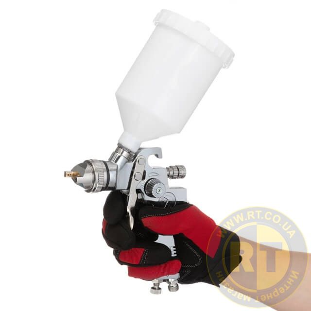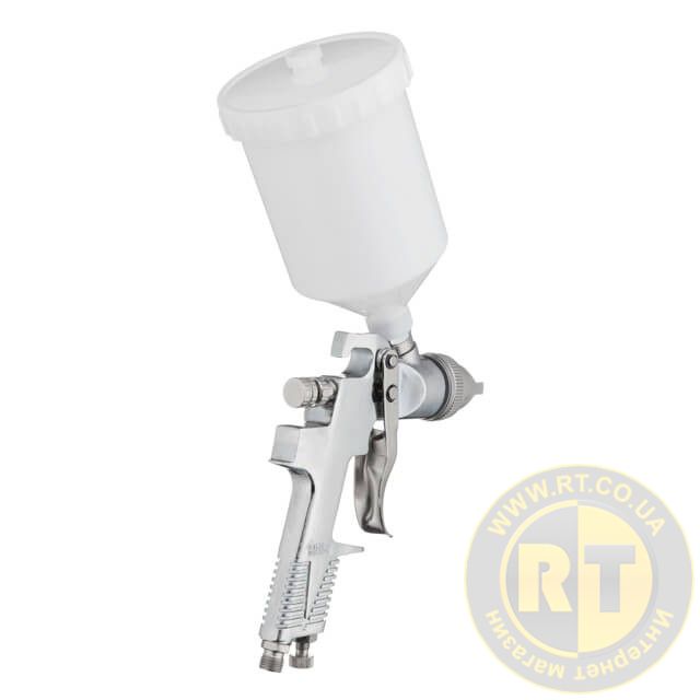 Оснащений пластиковим бачком об’ємом 600 мл, завдяки чому можна візуально контролювати рівень фарби, що дуже зручно. За необхідності бачок можна замінити на аналогічний новий PT-1901 або металевий PT-1906.