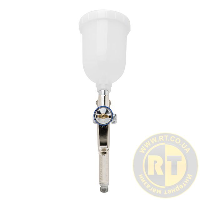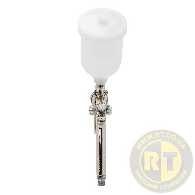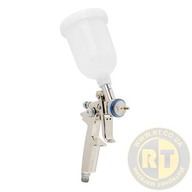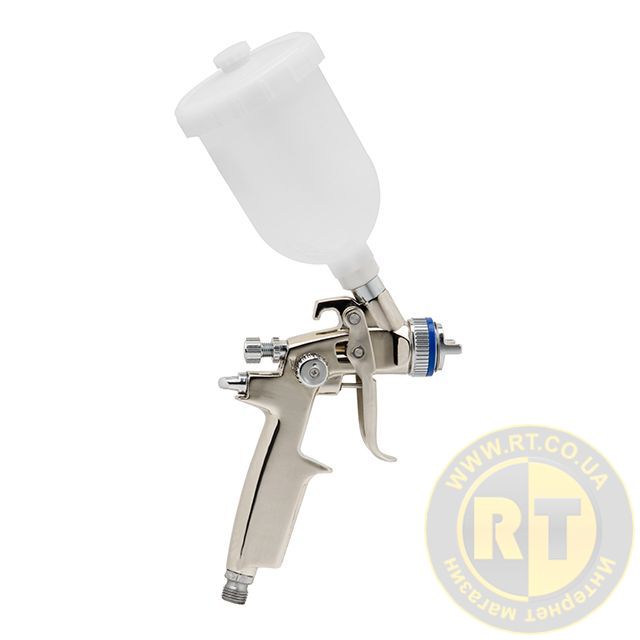 Оснащений пластиковим бачком ємністю 250 мл, завдяки чому можна візуально контролювати рівень фарби, що дуже зручно.