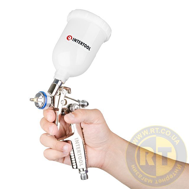 Пневматичний краскопульт HVLP II MINI професійний, форсунка 0.8мм, верхній пластиковий бачок 250 мл., 2-2.5бар INTERTOOL PT-0128