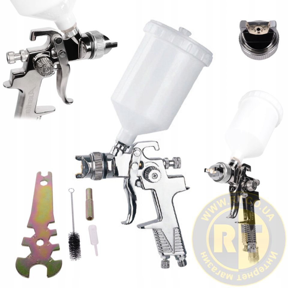 Пневматичний краскопульт тип HVLP верхній пластиковий бачок 600мл, діаметр форсунки-2,5мм.