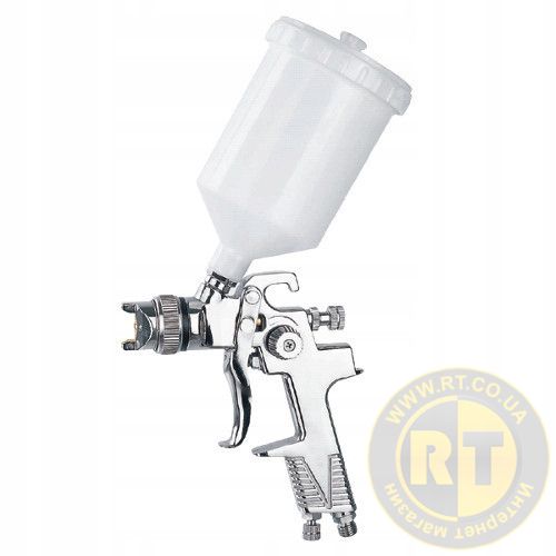 Краскопульт пневматичний тип HVLP верхній пластиковий бачок 600мл, діаметр форсунки – 1,4мм.