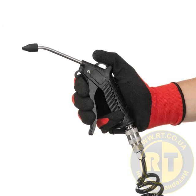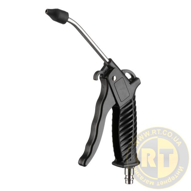 Головна особливість цього інструмента - це наявність вигнутої подовженої сталевої насадки 100 мм з пластиковим наконечником, яка дозволяє продувати навіть важкодоступні місця завдяки великій швидкості повітря та робочого тиску до 8 атм.