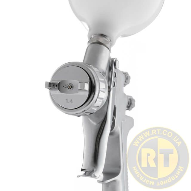 Встановлена форсунка діаметром 1,4 мм, вона є найбільш універсальною та підходить для більшості автомобільних фарб, лаків, баз та ін.