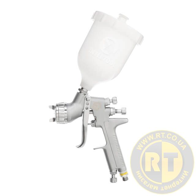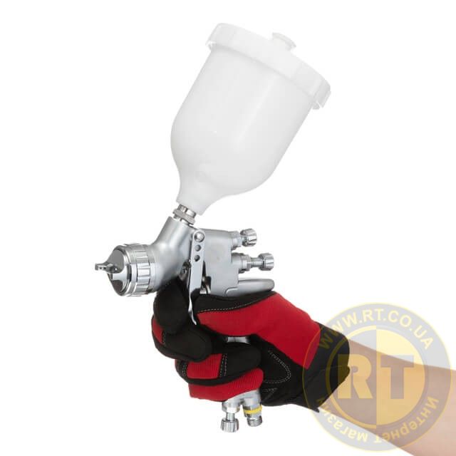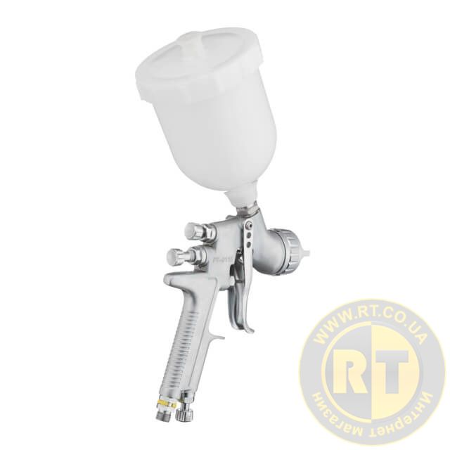 Оснащений пластиковим бачком об’ємом 600 мл, завдяки чому можна візуально контролювати рівень фарби, що дуже зручно. За потреби бачок можна замінити на аналогічний PT-1901 або металевий PT-1906.