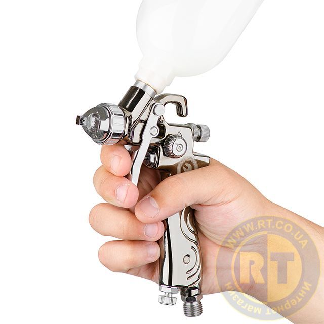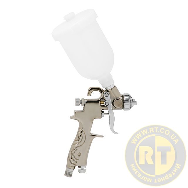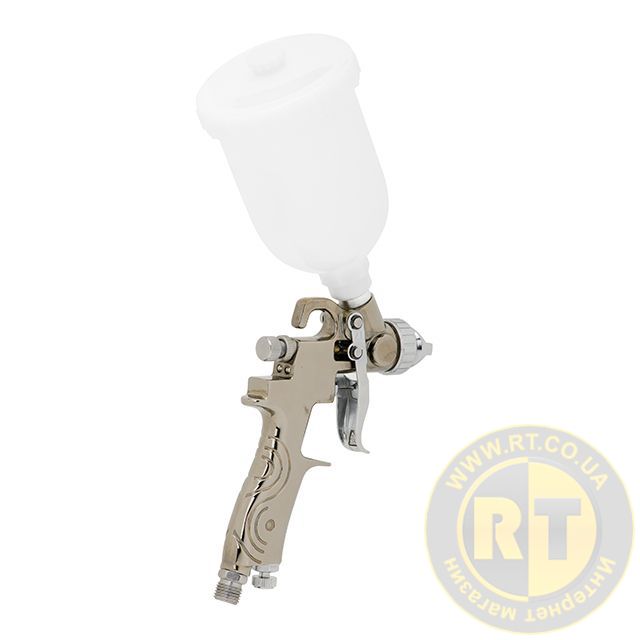 Оснащений пластиковим бачком об’ємом 250 мл, завдяки чому можна візуально контролювати рівень фарби, що дуже зручно. За потреби бачок можна замінити на PT-1903 або PT-1900.
