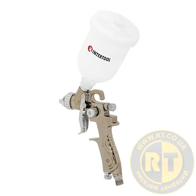 Фарбопульт пневматичний LVMP MINI, форсунка: 0,8 мм, верхній пластиковий бачок: 250 мл, 2-2,5 бар INTERTOOL PT-0129