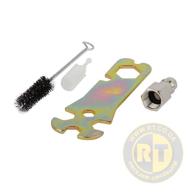 Також ви можете замінити розмір дюзи на інший, що дозволяє працювати одним фарбувальним пістолетом з матеріалами різної в'язкості або поставити новий аналогічний комплект форсунки, що продовжить строк служби вашого фарбопульта. До фарбувального пістолета передбачені змінні комплекти з діаметром дюзи: PT-2107 – 0.8 мм, PT-2108 – 1 мм, PT-2109 – 1.2 мм. Передбачено також ремкомплект - PT-2129.