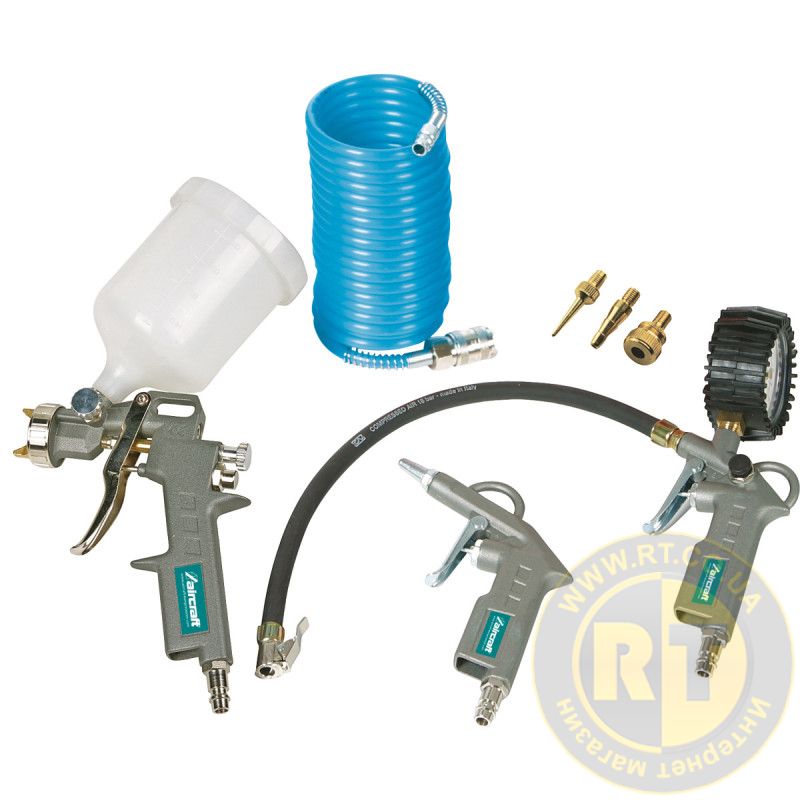 Краскопульт має плавно регульовані круглий і плоский смолоскипи бар, витрата повітря 100-200 л/хв. Вага фарбопульта 0,5 кг Продувний пістолет Aircraft BPK Вихідний отвір сопла 2,2 мм Підключення стисненого повітря 1/4″ Робочий тиск 2-6 бар Максимальний тиск 6 бар Витрата повітря 150 л/хв Вага 0,18 кг Пістолет для підкачки шин Aircraft SD 1/4″ Манометр робочий діапазон вимірювання 0-8 бар Вага 0,39 кг Високоякісний спіральний поліуретановий шланг Комплект насадок для пістолета для підкачування шин 3 шт.