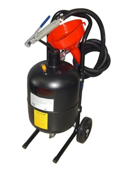Цей пересувний піскоструминний апарат напірного типу промислової якості має велику ємність бака 19 літрів. Пристрій поставляється з пластиковою заправною лійкою, а також оснащений надпотужним шлангом та піскоструминним пістолетом важільного дії.