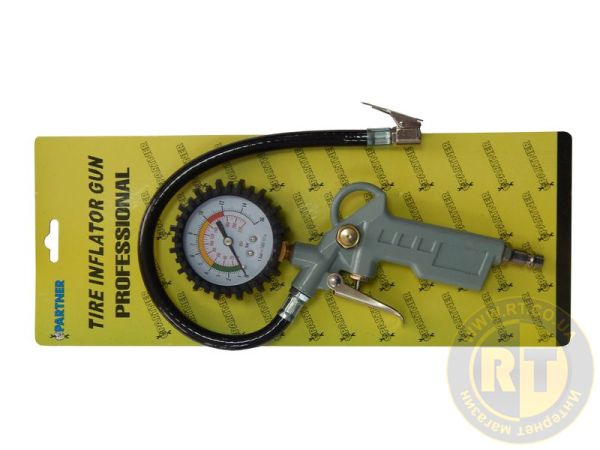 Пневматичний пістолет Partner STG-05 використовується для накачування коліс за допомогою стандартних автомобільних вентилів. Він оснащений стандартним швидкознімним з'єднувачем, який використовується на європейських пневматичних інструментах. Барометр покритий рифленою гумою, щоб захистити його від пошкоджень при необережному положенні.