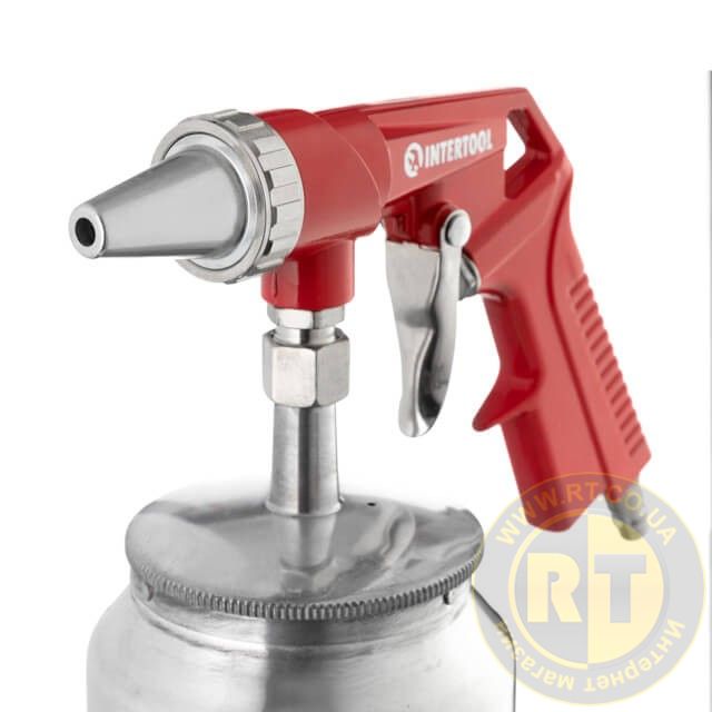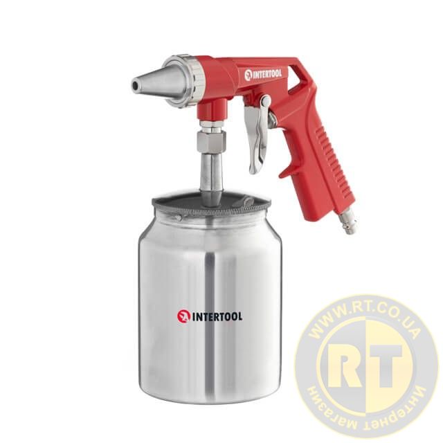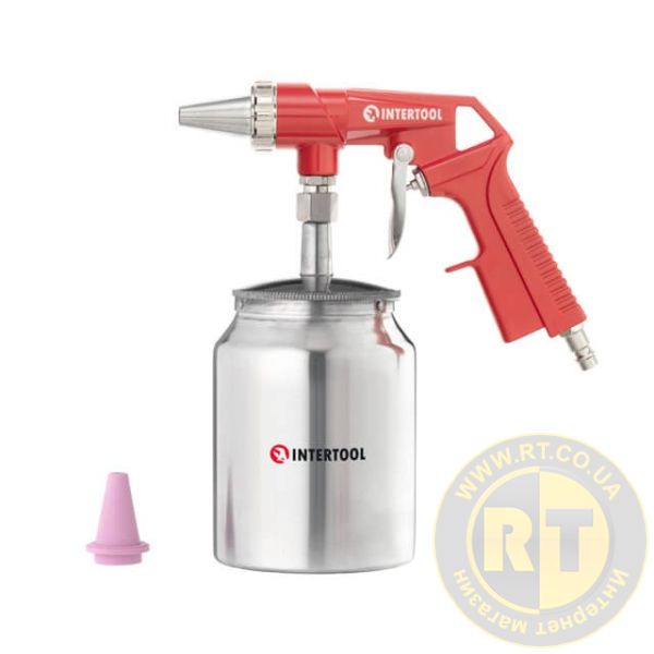 Пістолет піскострумінний, пневматичний, форсунка: 6 мм, нижня подача піску, металевий бачок 1000 мл, 8 атм INTERTOOL PT-0707