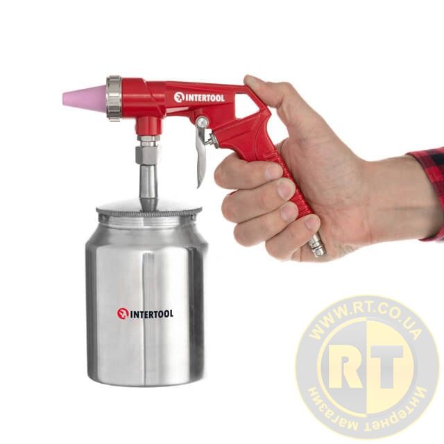 Пістолет піскострумінний, пневматичний, форсунка: 6 мм, нижня подача піску, металевий бачок 1000 мл, 8 атм INTERTOOL PT-0707