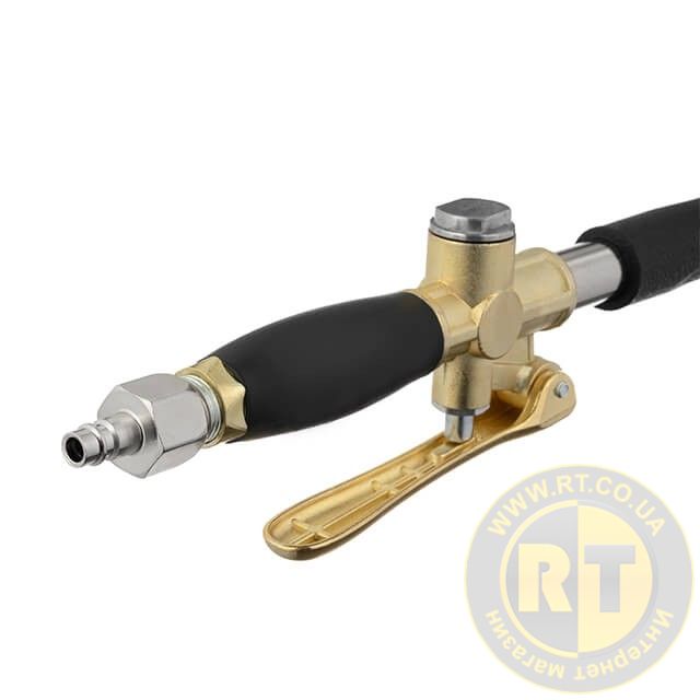 Забезпечується тривалий строк експлуатації, інструмент оснащений зносостійкими соплами. Має розширену комплектацію: у комплекті два конектори (на шланг, для швидкороз'ємного з'єднання).