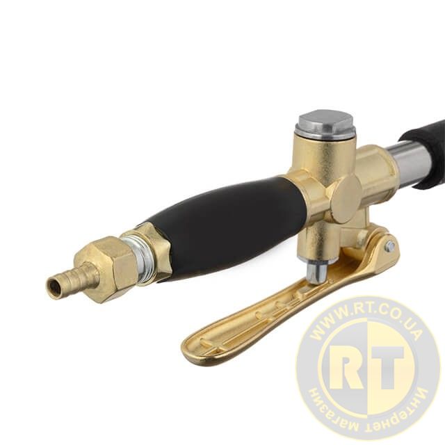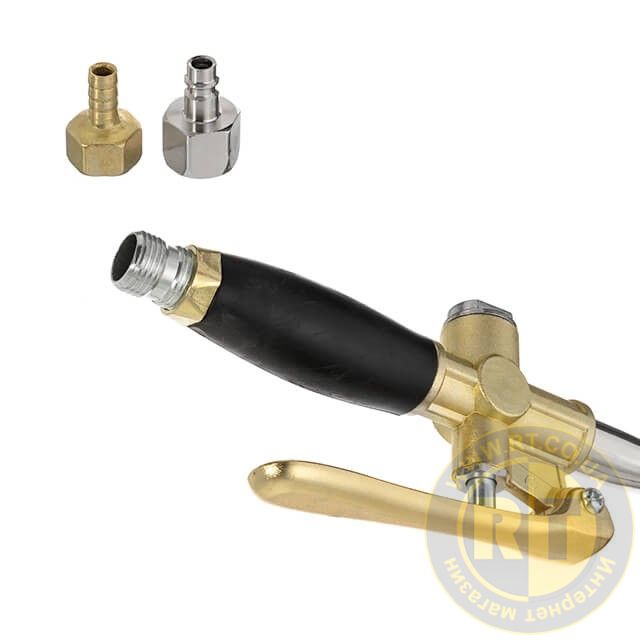 Забезпечується тривалий строк експлуатації, інструмент оснащений зносостійкими соплами. Має розширену комплектацію: у комплекті два конектори (на шланг, для швидкороз'ємного з'єднання).