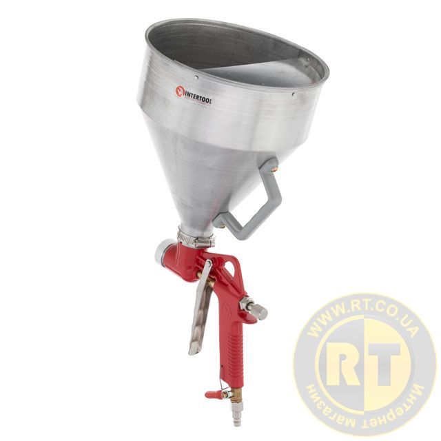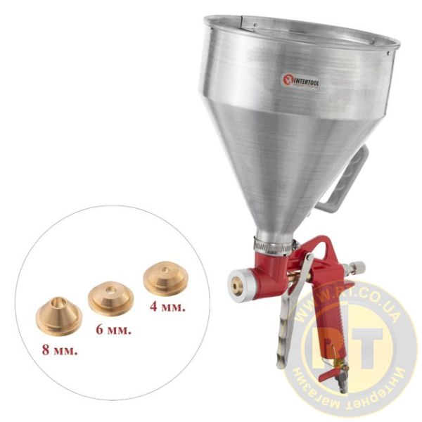 Розпилювач штукатурний пневматичний, форсунки: 4, 6, 8 мм, верхній металевий бачок, 6000 мл, 3-6 атм INTERTOOL PT-0401