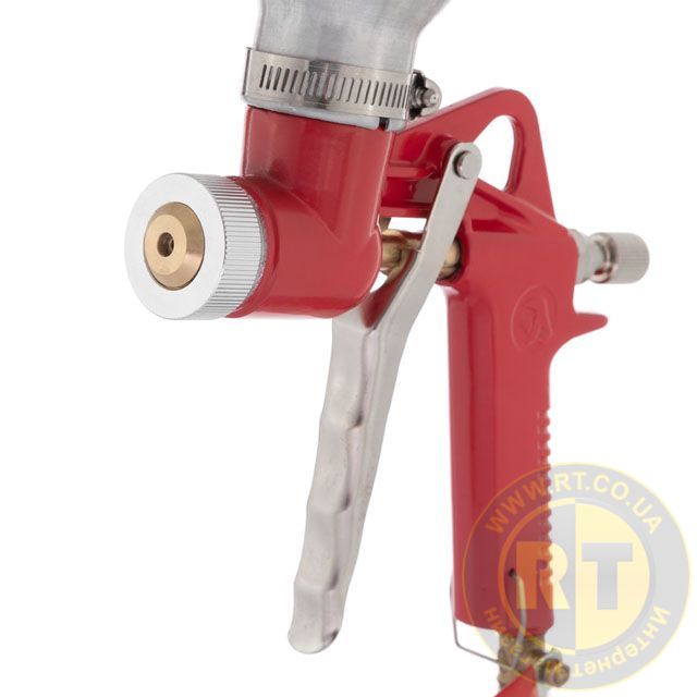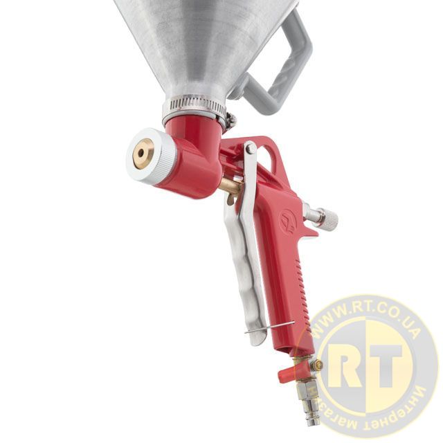 В конструкції пневматичного пістолета передбачена можливість перекриття подачі повітря, а також регулювання подачі матеріалу. У комплект входять три латунні форсунки діаметром 4, 6, 8 мм для використання з розчинами різної в'язкості.