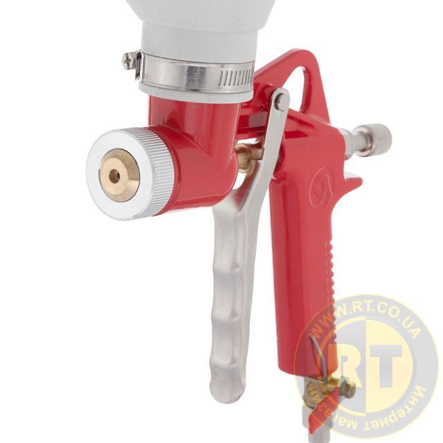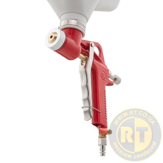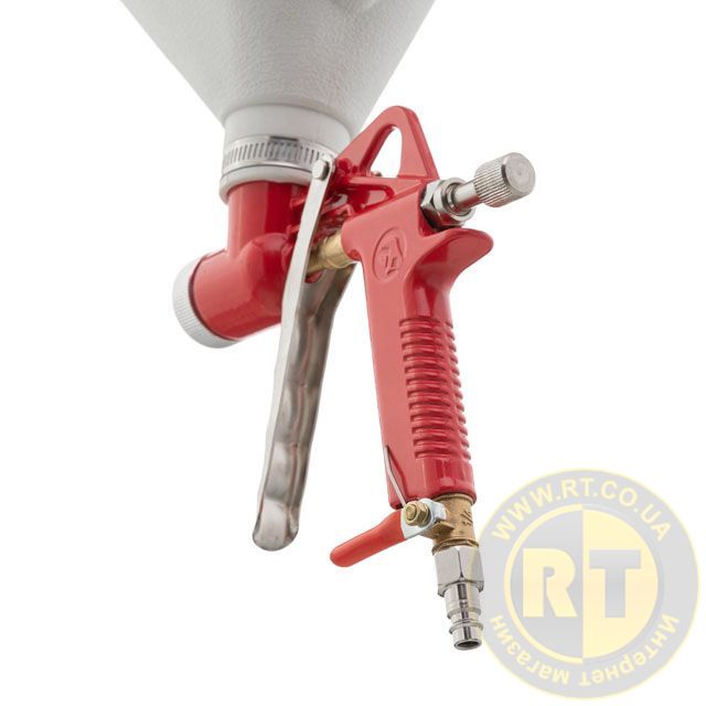 В конструкції пневматичного пістолета передбачено можливість перекриття подачі повітря, а також регулювання подачі матеріалу. У комплект входять три латунні форсунки, діаметром 4, 6, 8 мм, для використання з розчинами різної в'язкості.